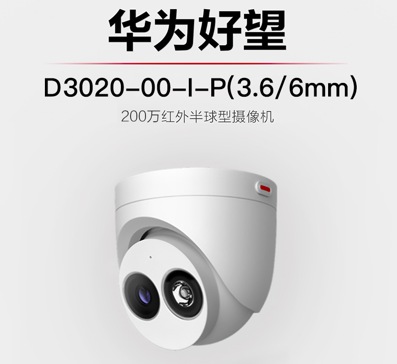 華為安防監(jiān)控攝像機200萬紅外夜視半球型室內可拾音防塵防水POE供電手機遠程攝像頭適用于家庭商超 D3020-00-I-P攝像頭 焦距(2.8/3.6/6.0mm)